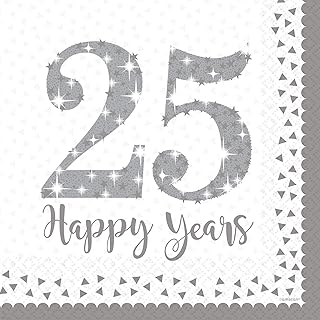Amscan 9902198 - Servietten Happy Years 25, 16 Stück, 33 x 33 cm, Happy Birthday, Geburtstag