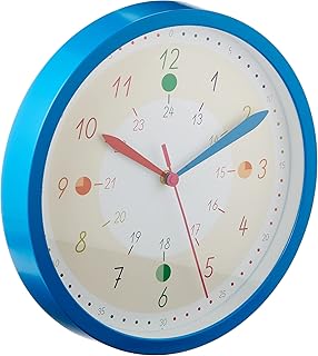 TFA Dostmann Kinder-Wanduhr mit Lernuhr TICK & TACK, 60.3058.06.91, für Jungen & Mädchen, Uhrzeit Lernen, farbenfroh, blau, L 308 x B 44 x H 308 mm