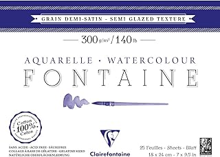 This item: Clairefontaine - Ref 96413C - Fontaine Cold Pressed Watercolour Glued Pad (25 Sheets) - 18 x 24cm Size, 300gsm Paper - Suitable for Watercolour Artwork £17.98 (£0.72/count) Winsor & Newton, Cotman Watercolour, 'Studio Set', 45 x Half Pans + 1 x Cotman Watercolour Round Brush £37.95 Fontaine bloc collé 4 côtés 25F 18x24cm 300g grain fin. Fontaine bloc collé 4 côtés 25F 18x24cm 300g grain fin. 96413C Format : Finish : Specifications : Reference Attribute 96413C ean13 3329680964134 Dimension 18.000 X24.000 X1.300 Number of sheets 25 Exterior material Card Weight 300g/m2 Number of page reliure collée 4 côtés Product type