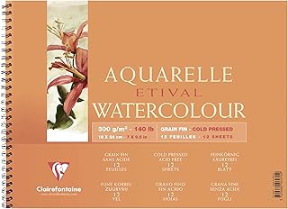 Clairefontaine 96070C Malblock, mit Doppelspirale Aquarellpapier Feinkörnig, Etival/Zellulose, 12 x 18 cm, 12 Blatt, 300 g, weiß