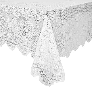 Juvale Tischdecke Spitze - Rechteckig, Polyester, Wiederverwendbar, Maschinenwaschbar - Blumenmuster und Wellenkanten - Für Geburtstage, Hochzeiten - Weiß, 1,4 x 1,8 Meters