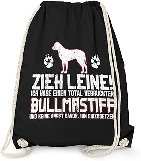 Fashionalarm Turnbeutel - Zieh Leine - verrückter Bullmastiff | Fun Rucksack mit lustigem Spruch als Geschenk Idee Rasse Hunde Besitzer Züchter, Schwarz One Size