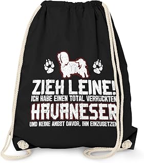 Fashionalarm Turnbeutel - Zieh Leine - verrückter Havaneser | Fun Rucksack mit lustigem Spruch Geschenk Idee Rasse Hunde Besitzer Züchter Gassi, Schwarz One Size