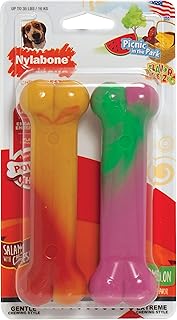 Nylabone 983748 Dura Power Chew, Flavour Frenzy, Salami- mit Käse- und Wassermelonengeschmack, Doppelpack, für mittelgroße Hunde (bis 16 kg), M