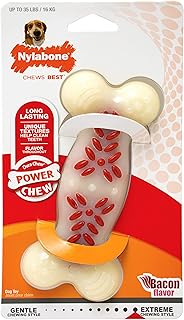 Made with tough, durable nylon, the Power Chew DuraChew Axis Bone is the long-lasting chew toy you need for your aggressive chewer. This power chew toy is packed with savory bacon flavor and has a unique shape that is easy to hold, keeps dogs busy, and satisfies their natural urge to chew. Powerful dogs need powerful chew toys! Made with tough, durable nylon and a textured surface for extra chewing fun, the Nylabone Dura Chew Power Chew Textured Bone is the long-lasting chew toy you need for aggressive chewers. The bristles raised during chewing promote clean teeth and fresh breath and help control plaque and tartar buildup.
