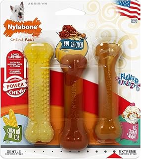 Nylabone 983611 Dura Power Chew, Flavour-Frenzy-Paket mit unterschiedlichen Sorten, Maiskolben-, Grillhähnchen- und Eiscremegeschmack, 3er-Pack, S