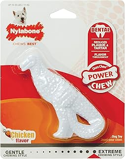 Nylabone 983706 Dura Power Chew, Dental-Dino-Form, reduziert Zahnbelag und Zahnstein, Hähnchengeschmack, für kleine Hunde (bis 11 kg), S