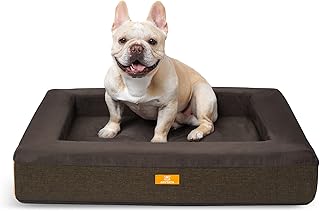 AKUTATA Imperial Hundebett mit Nackenrolle, Ränder, Nackenrolle, Hundebett, Plüsch für einfache Beruhigung, wasserabweisendes Futter, atmungsaktiver Bezug, maschinenwaschbar, braun, 83.8 cm