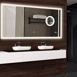 Badspiegel mit Beleuchtung 80×60cm, LED Badezimmerspiegel mit Touchschalter, Wandspiegel mit Beleuchtung für Badezimmer, Dimmbar, Beschlagfrei, Warmweiß/Natur/Kaltweiß, (Horizontal, 80×60cm)