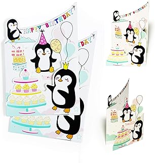 2er Set Glückwunschkarte Happy Birthday zum Geburtstag mit Pinguin | Kinder Geburtstagskarte| Karte oder Gutschein zum Kindergeburtstag, für Jungen und Mädchen, X008