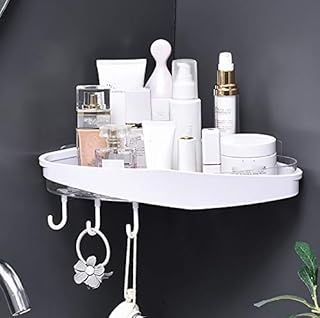 Hylulu Eckregal Kunststoff Eckablage Duschkorb Triangle Duschregal Duschablage Ohne Bohren Selbstklebendem Mit 3 Haken für Küchen und Badezimmerzubehör Weiß B