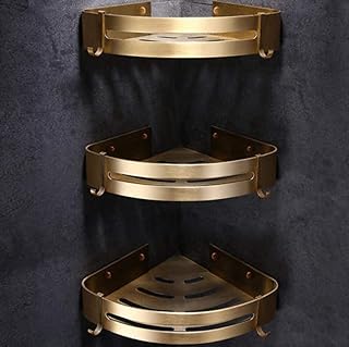 Duschregal Eckregal Ohne Bohren, Free Punch Badezimmer Regal Titan Gold Raum Aluminium Lagerregal Dreieck Korb Eckregal-C