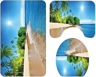 3-teiliges Badvorleger-Set Duschmatte + Konturmatte + WC-Deckelbezug, Morbuy Weihnachtsmann rutschfeste Badvorleger für Küche, Naturlandschaftsdruck (Strand)