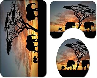 3-teiliges Badvorleger-Set Duschmatte + Konturmatte + WC-Deckelbezug, Morbuy Weihnachtsmann rutschfeste Badvorleger für Küche, Tierwelt 3D-Druck (Elefant-B)