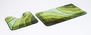 GOODWAY 2 Teiliges Badematten Set, Badteppich, Badvorleger Wave, grün mit Ausschnitt