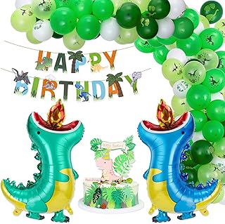 Dino Geburtstag Deko, Dino Deko Kindergeburtstag, Dinosaurier Geburtstagdeko Jungen mit Dino Luftballon Grün, Happy Birthday Banner, Dinosaurier Cupcake Toppers, Dino Party Deko Junge Kindergeburtstag