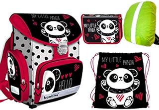 4-teiliges Schulranzenset Ranzen Schulranzen, Federtasche, Turnbeutel, Regenschutz Kinder Bambino I Love Panda