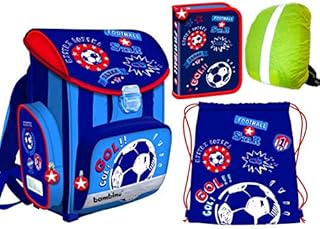 Bambino Schulranzen Ranzen Schulranzenset 4-teilig mit Federtasche, Turnbeutel, Regenschutz Kinder Fußball