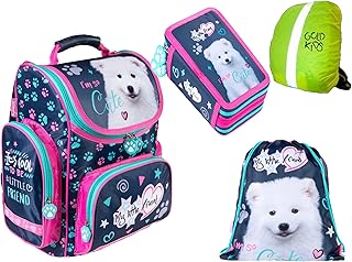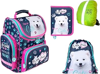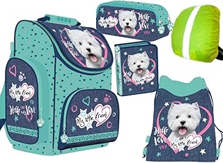 6-teiliges Schulranzen Set ergonomischer Ranzen Federmappe Turnbeutel Brotdose Trinkflasche Regenschutz Kinder Hund Dog My Little Friend