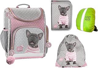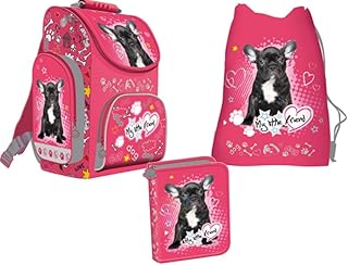 My Little Friend Hund Buldog Ranzen Schulrucksack Schulranzen Federtasche Federmappe Schuhbeutel Turnbeutel 3 teiliges Set Schulset rosa