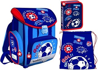 Bambino Schulranzen Ranzen Schulranzenset 3-teilig mit Federtasche, Turnbeutel für Kinder Fußball