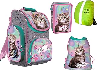 4-teiliges Schulranzenset My Little Friend Ranzen Schulranzen, Federtasche, Turnbeutel, Regenschutz Kinder Katze Cat