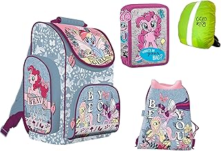 4-teiliges Schulranzenset My Little Pony Ponies Schulranzen, 2-fache gefüllte Federtasche, Schuhbeutel, Ranzen Regenschutz