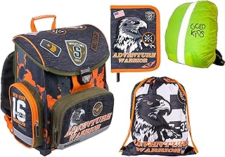 4-teiliges Schulranzenset Ranzen Schulranzen, Federtasche, Turnbeutel, Regenschutz Kinder Bambino Military Grundschule erste Klasse