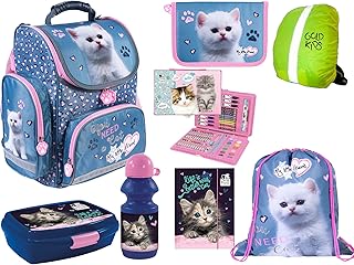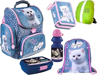 7-teiliges Schulranzenset My Little Friend Ranzen Schulranzen, Federtasche, Turnbeutel, Gummizugmappe, Trinkflasche, Brotdose, Regenschutz Kinder Katze Cat