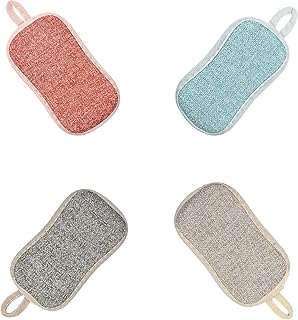4Stück Scheuerschwamm, Geschirrschwamm Waschbar,Schwämme küche Bio,Küchen Schrubben Schwämme Mikrofaser,Wiederverwendbare Geschirrspül Reinigung Schwämme für Pfännchen, Antihaftbeschichtete Pfannen