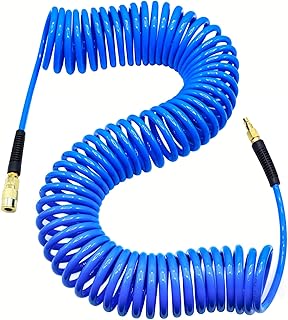 YOTOO Polyurethane Recoil Air Hose (Blue) 102022 This recoil air hose is 1/4-Inch inner diameter by 50-Feet long. It is made of polyurethane material which makes this air hose resists kinking, abrasion, UV radiation, electricity, oil, chemicals and heat. 150 PSI working pressure. Flexible at -40 to +150 degree F. YOTOO Polyurethane Recoil Air Hose (Green) 102001d This recoil air hose is 1/4-Inch inner diameter by 25-Feet long. It is made of polyurethane material which makes this air hose resists kinking, abrasion, UV radiation, electricity, oil, chemicals and heat. 150 PSI working pressure. Flexible at -40 to +150 degree F.