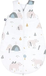 Julius Zöllner 9160910090 Baby Ganzjahresschlafsack aus 100 Prozent Baumwolle, Größe 90, 12-24 Monate, Standard 100 by OEKO-TEX, Mountain Bear, weiß, 400 g