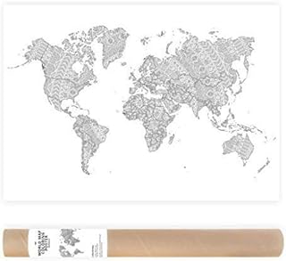 Detaillierte Mandala Weltkarte oder Reisekarte Poster zum Ausmalen für Erwachsene