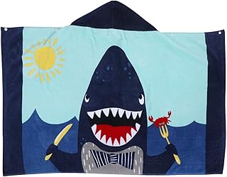 Athaelay Weiche Baumwolle Kapuzenhandtuch Poncho für Kinder Bad Pool Strand Schwimmen Jungen Mädchen Cover Up Umhang Cartoon Hai Thema