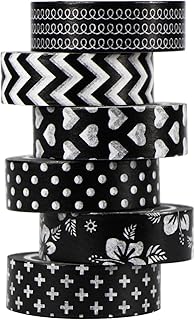 UOOOM 6 Rolls 10M x 15MM Washi Tape Set Masking Tape Schwarz Weiß Muster Dekoband Klebebänder DIY Scrapbook deko (Schwarz)
