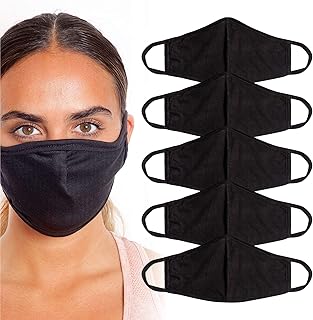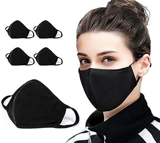5 x schwarze Gesichtsmasken, modisch, schützend, Unisex, schwarze Staub-Baumwolle, waschbar, wiederverwendbar, Baumwollstoff (schwarz, 5 Stück)