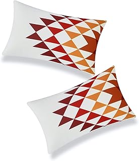 Hofdeco Moderner Boho Patio Indoor Outdoor Lendenwirbelkissenbezug nur für Hinterhof, Couch, Sofa, dunkelrot, orange, gelb, Azteken-Dreiecke, 30,5 x 50,8 cm, 2 Stück
