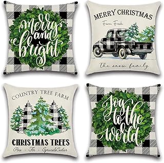 JOTOM Weihnachten Kissenbezug wasserdichte Kissenhülle 45x45cm 4er Set Sofakissen Dekokissen Bezug für Sofa Zimmer Outdoor Balkon Terrasse Patio Garten Outdoor (Schwarz-Weiß Kariertes Weihnachten B)