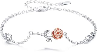 Rose Blume Armband,Frauen Armband 925 Sterling Silber Damen Armband mit Rosen für Freundin Mädchen Liebhaber Mama Valentinstag Geschenke