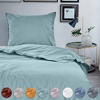 jilda-tex Bio-Bettwäsche Stone-Washed Lissabon 100% Bio-Baumwolle Knitterlook Stehsaum Uni Made in Green (Salbeigrün, 135 x 200 cm)